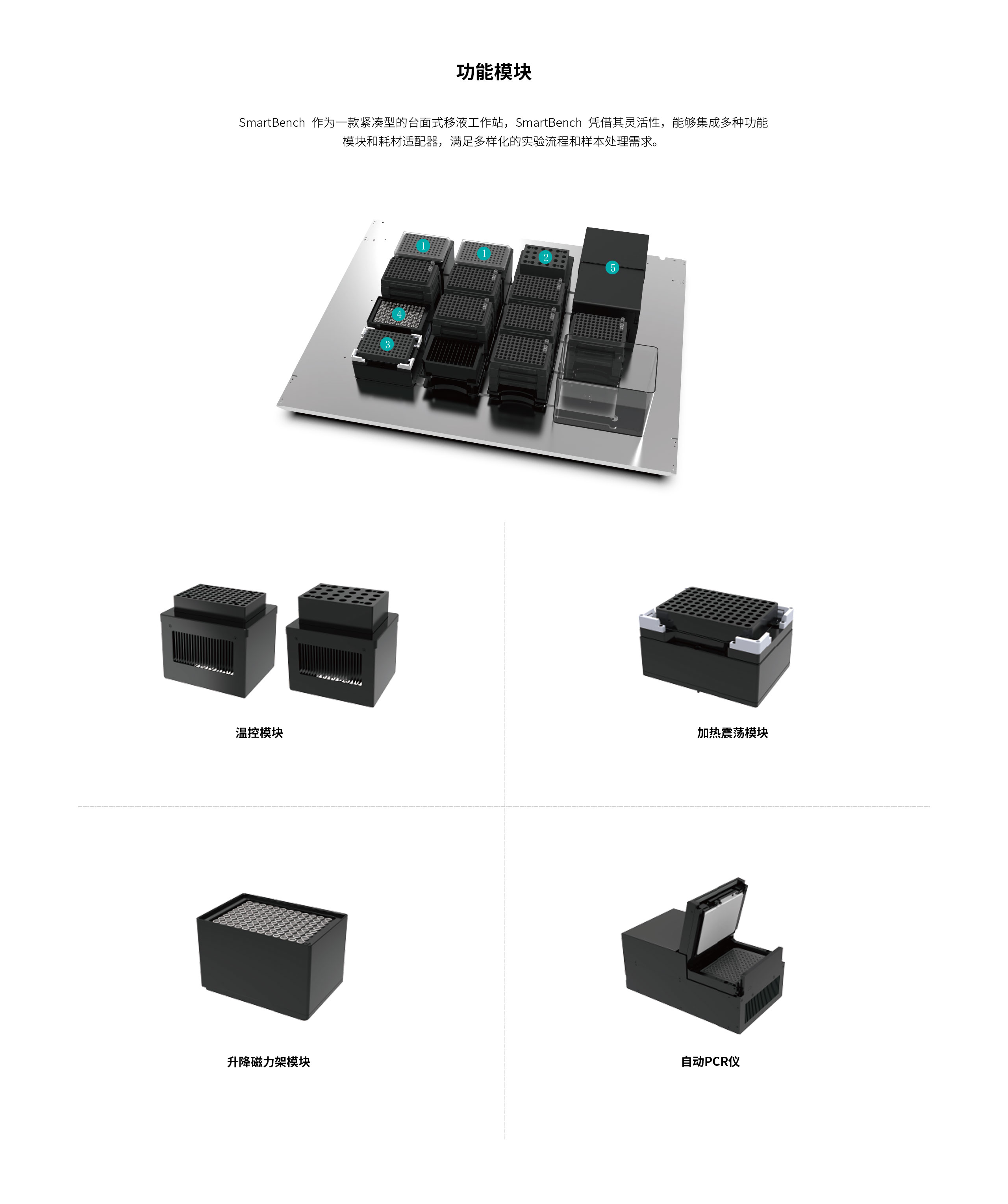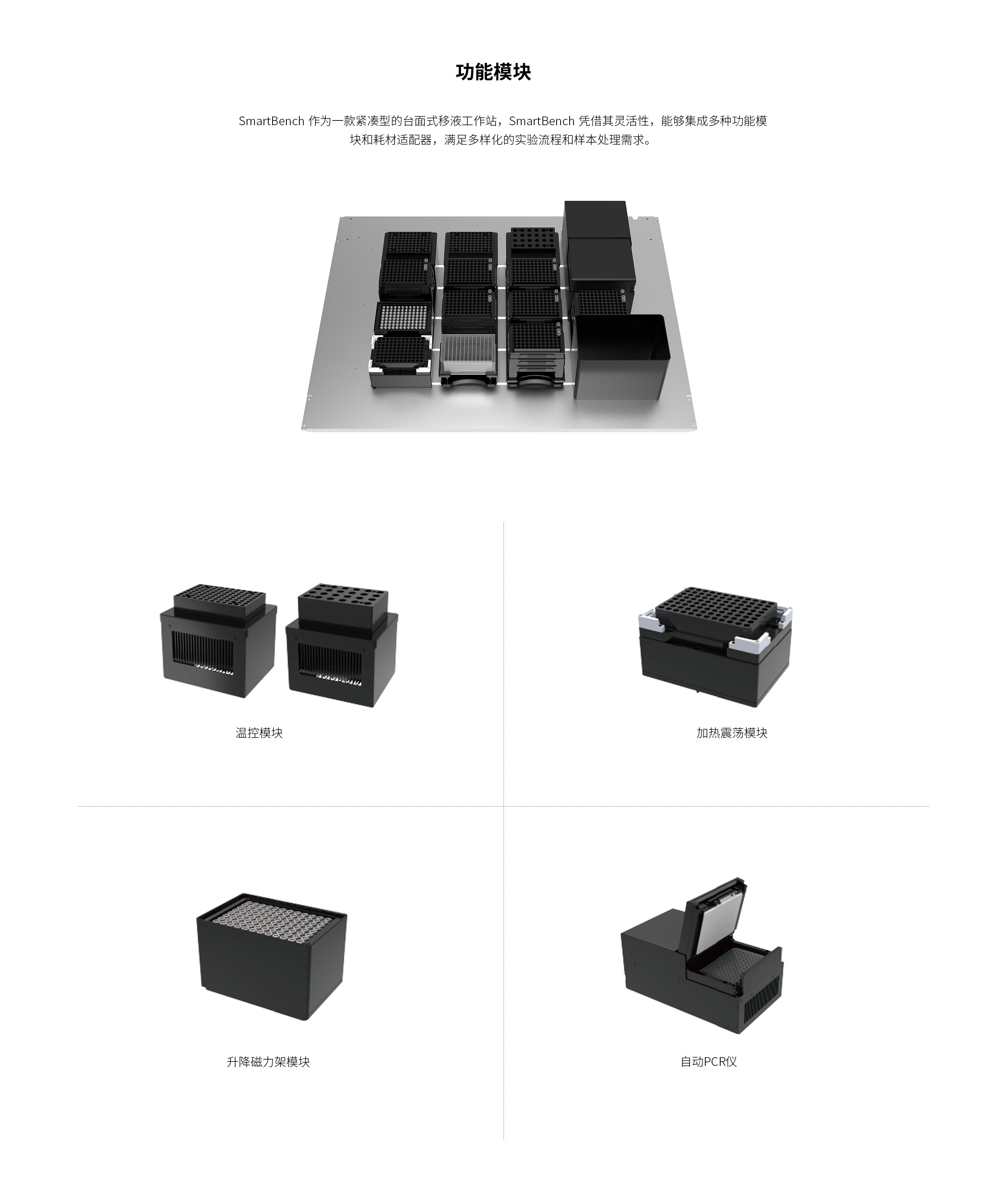 ✓ 可选温控、加热震荡、升降磁力架、自动 PCR 等模块。